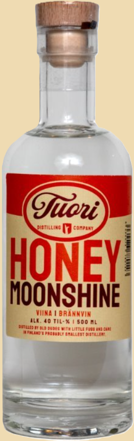 Description: Tuori Honey Moonshine is a crystal-clear beverage fermented and distilled from Finnish honey molasses. It displays the skills of the elder dudes of the Tuori artisan distillery. Bearing its origins in clean northern nature, pure spring water and tradition of past generations, this unique drink brings you bold, but smooth enjoyment. The mildly resinous hints and round mouthfeel combines the lake-side meadows and resemblance of the wilderness of the woodlands on your tongue.
