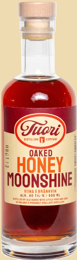 Description: Tuori Oaked Honey Moonshine is the refined form of pure Finnish flower honey. The spirit of this fine drink is acquired from honey molasses through multistep fermentation and careful distilling. Ennobled with French oak and matured in casks of Balkan oak, its taste has resemblances of dark rum and brandy, even hints of rye whisky and bourbon. The strong and smooth taste emphasizes the unique flavor of a fine distillate made from honey.